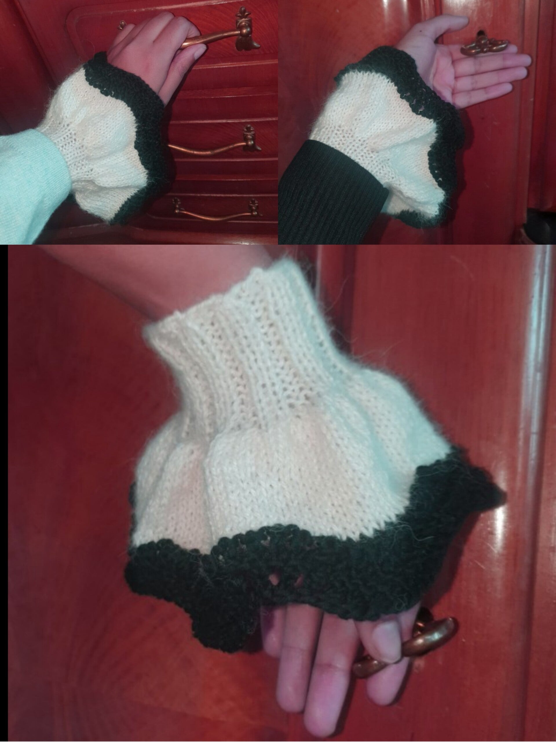 EN : Inspired by the extravagant and colorful costumes featuring intricate lace sleeves worn by the men in the iconic 1984 film Amadeus starring F. Murray Abraham as Antonio Salieri, these cashmere wrist warmers bring a touch of elegance to any ensemble.